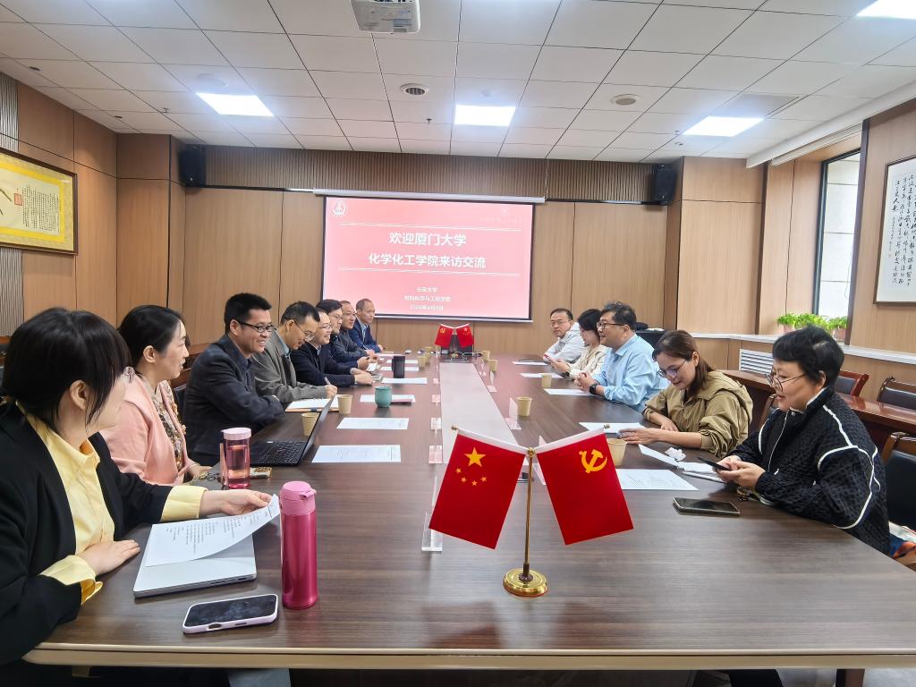 为深化校际交流合作,推动学科建设与人才培养高质量发展,4月9日上午,厦门大学化学化工学院副院长傅钢、黄伟珺一行到访材料学院,双方在北校区致远大厦401会议室进行调研座谈。材料学院副院长郭亚杰、许培俊,新能源材料与器件系及实验教学中心相关负责人、骨干教师参加座谈。会议由材料学院院长肖月主持。