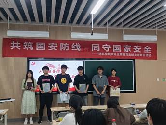 在“4·15”全民国家安全教育日到来之际,为进一步提升支部成员国家安全意识,强化政治理论学习,4月12日下午,材料学院本科生第四党支部于修远教学楼2208教室开展了“共筑国安防线,同守国家安全”主题党日活动暨第三期“我来讲党课”理论学习活动。会议由支部书记肖雅蕊主持,李恩毅同志、杨佳琪同志主讲,支部全体成员参加。