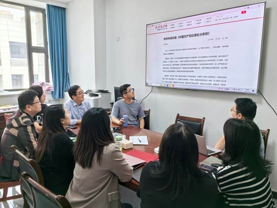 4月24日上午,高分子系党支部在渭水校区致远楼高分子系办公室集体学习了中共中央印发的《中国共产党纪律处分条例》,会议由党支部组织委员晏妮主持,全体无课教师参会并积极讨论。