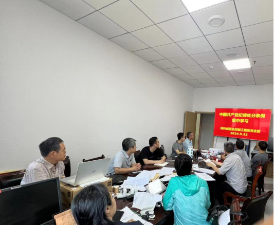 2024年5月22日下午,材料成型及控制工程系党支部在北校区材料成型及控制工程系办公室开展了《中国共产党纪律处分条例》专题教育学习活动。本次会议由支部书记周亮同志主持,材料成型及控制工程系全体教师党员参加。