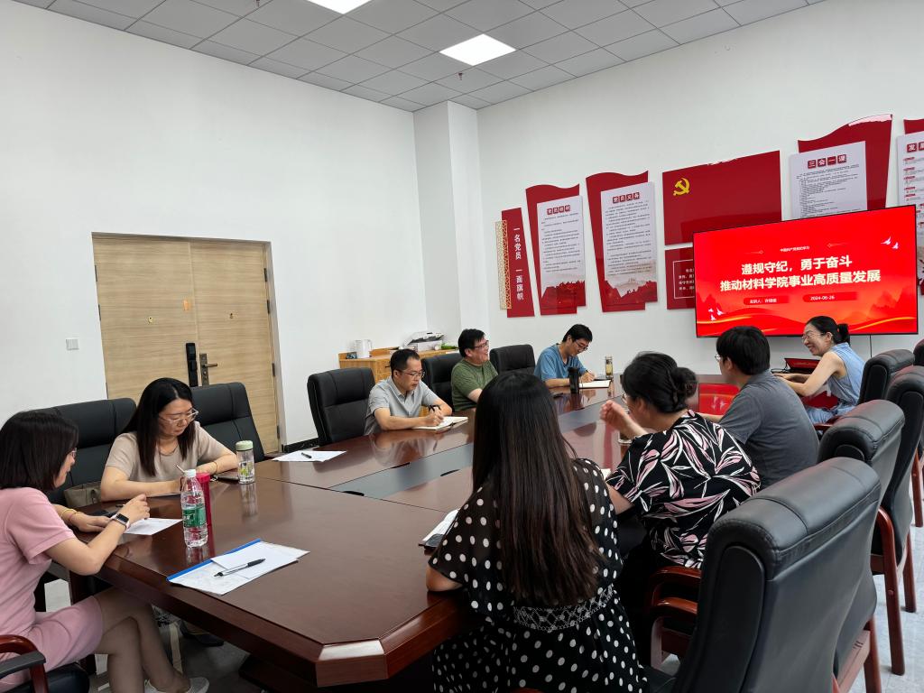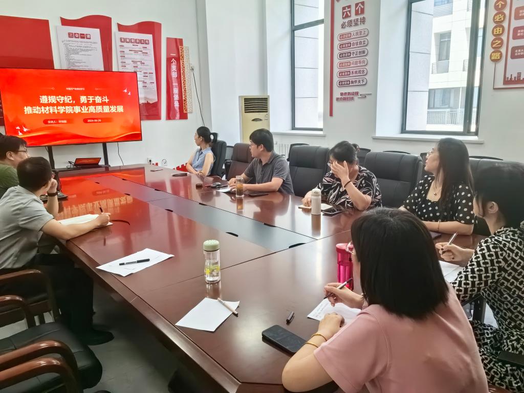 2024年6月26日上午,我院高分子材料与工程系党支部在北校区致远大厦党建活动室开展了党纪学习教育专题活动暨支部书记讲党课活动。专题活动由党支部书记许培俊同志主持,AC米兰中文院长肖月同志列席,高分子材料与工程系党支部全体无课教师参加。