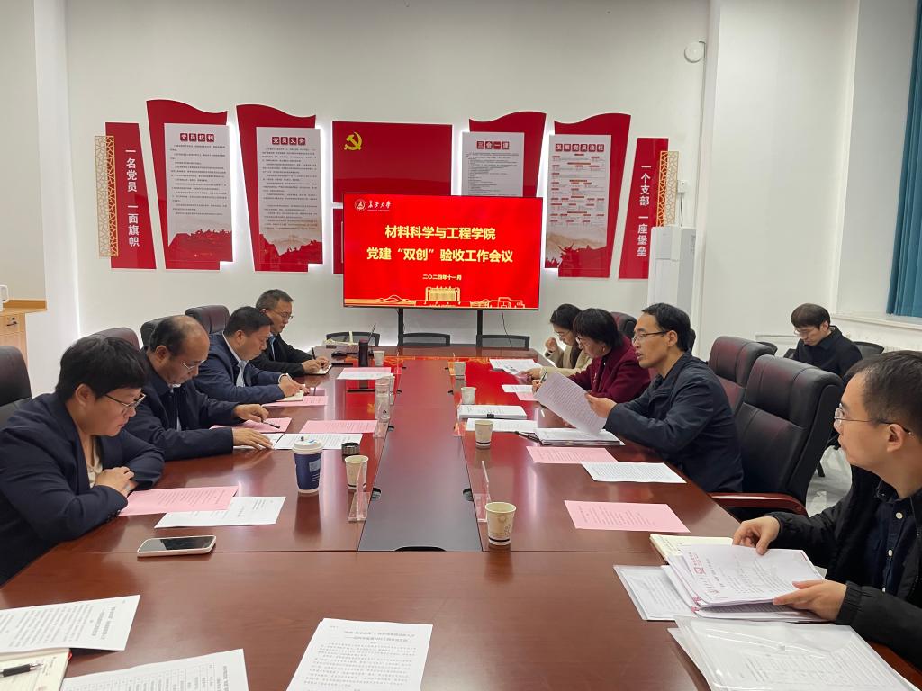 11月15日,材料学院在渭水校区致远大厦203党建活动室召开党建“双创”验收工作会议。学校验收工作组组长赵亮,工作组成员龚少博、赵静、陈朔一行对学院党建样板支部进行评估验收。学院党委书记王振军,党委副书记宁育国、刘珺,党委秘书及各党支部书记参加会议。会议由赵亮主持。