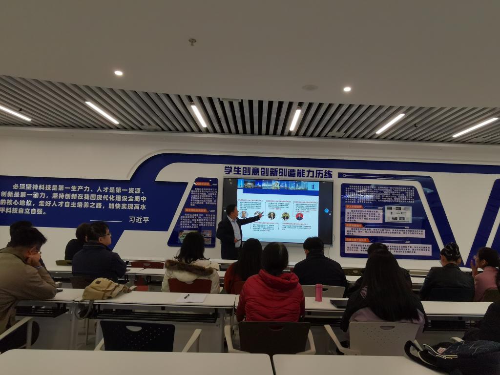 党课前,宁育国带领材科系全体党员参观了未来交通学院智能交通设施、智慧交通系统与先进载运装备等智能交通运输展厅,及“道路智能建造与修复”、“综合交通推演物理沙盘”,并通过VR等技术实时体验了数字模拟与智慧交通的研究成果。