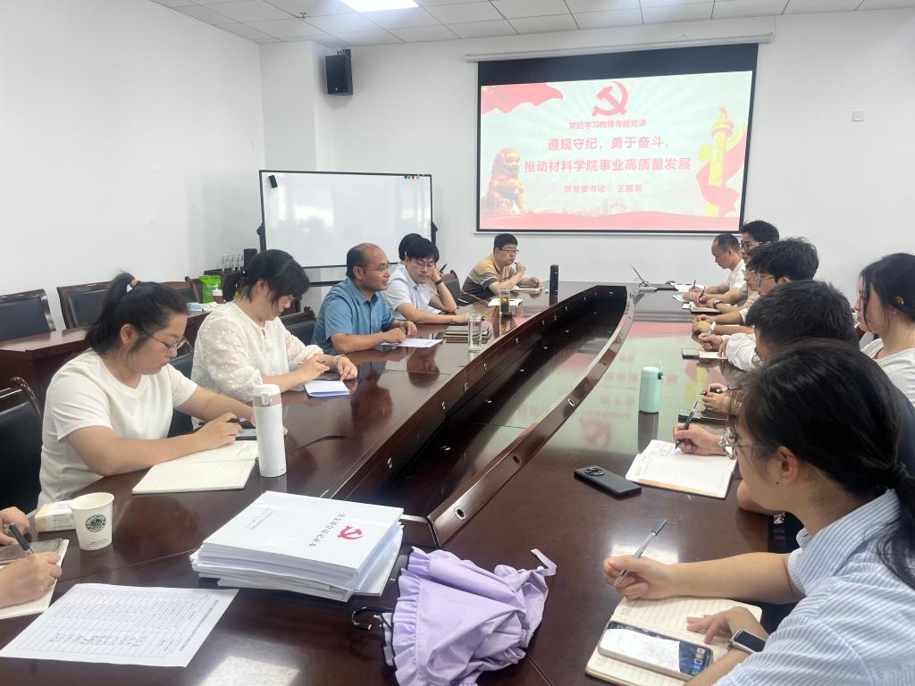 6月24日上午,院党委书记王振军讲授党纪学习教育专题党课,教工支部书记、学生支部书记、院党委秘书参加了会议。