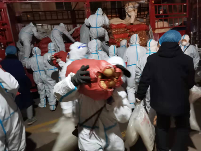 来自佳县的援助物资在晚上12点多终于抵达南校区,这是一个不眠之夜,很难想象运输土豆的志愿者以老同志居多,我院两位年龄在50岁以上的同志孙增智、郭成斌老师,冒着严寒,卸货分装,无愧的成为年轻人的典范和榜样。
