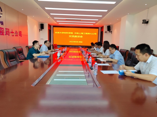 公司总工程师张飞、人力资源部部长温妮妮、纪委部长杨勇、校友刘含涛等出席座谈会。在观看中铁上海工程局企业宣传片后,张飞首先代表中铁上海工程局集团第七工程有限公司对材料学院此次来访表示欢迎。之后张总详细介绍了第七工程有限公司的规模、人员结构、主营范围、企业文化等,并表示希望与我院增强校企交流,开展产学研、优势学科合作,实现校企互惠共赢。