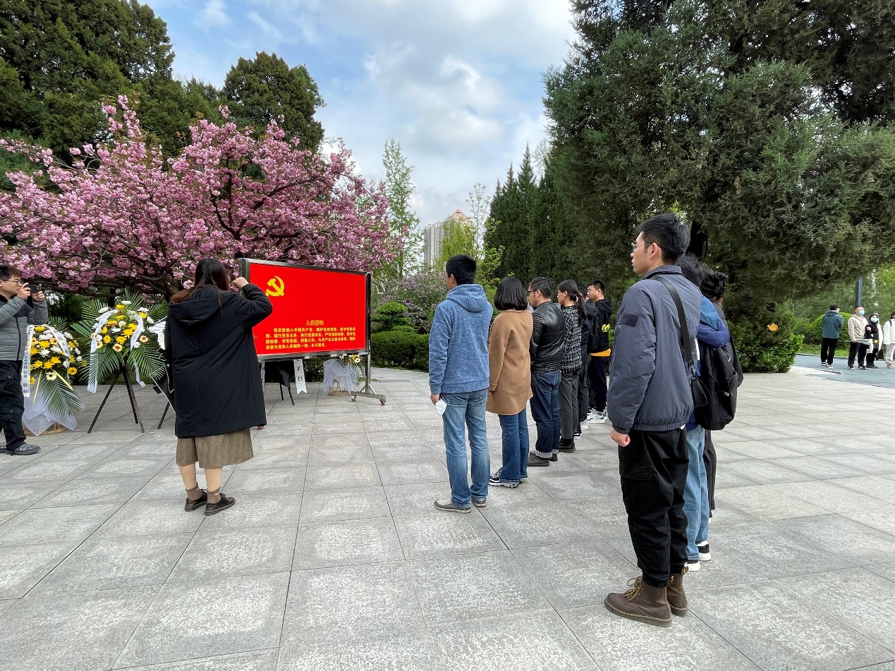 扫墓活动开始,研究生2021级第一党支部书记滑维杰代表全体党员向烈士纪念碑敬献花圈,以此来表达对先烈们的崇高敬意,大家向纪念碑默哀三分钟,表达对先烈们的哀思,默哀结束后,全体党员们一起重温了入党誓词,那铿锵有力的誓词,使全体党员们深刻感受到了革命先烈们坚定的革命信念和大无畏的革命精神。