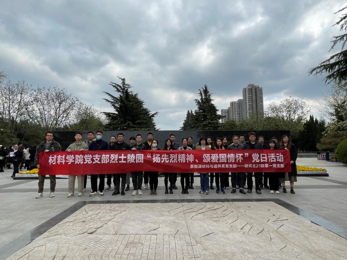 又是一年芳草绿,春风拂袖清明祭。为悼念革命烈士,缅怀英烈的丰功伟绩,教育党员继承革命先烈光荣传统,更好传承和弘扬英烈精神,弘扬爱国精神,清明节来临之际,材料学院研究生2021级第一党支部联合新能源材料与器件系党部于2023年4月4日进行了主题为“扬先烈精神,颂爱国情怀”的主题党日活动。通过肃立默哀、重温入党誓词等方式表达对革命先烈的敬仰和追思,以实际行动弘扬英烈精神、赓续红色血脉,增进爱党爱国爱社会主义情感。