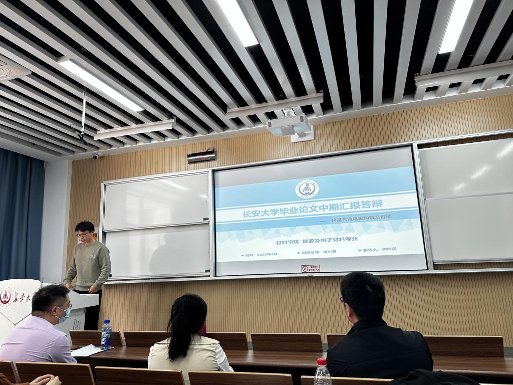 为切实做好本科生毕业设计(论文)过程和质量监督,掌握学生毕业设计(论文)进展情况,我院新能源材料与器件系于2023年4月18日下午14:00对本专业2023届全体毕业生开展了中期检查答辩工作。新能源材料与器件系全体教师参加,学院督导王利捷老师对答辩过程进行了检查与指导。