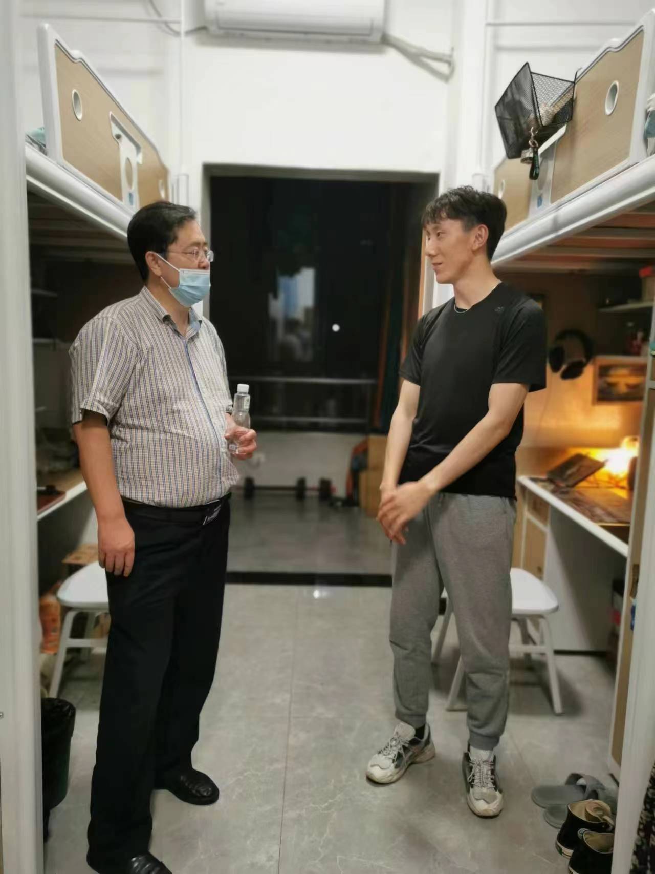 张骞文部长强调宿舍是辅导员进行学习生活观察、收集学生信息、了解学生思想动态的重要阵地,辅导员进宿舍要实着进、实着出,在考虑周全的同时做到具体问题具体分析。随后,各位老师通过深入宿舍走访对学生公寓进行安全排查,通过检查安全隐患,落实网格管理,强化宿舍卫生,确保学生公寓无安全漏洞。期间副书记张晓琳与部分学生开展谈心谈话,为学生答疑解惑,鼓励同学们多参加户外活动,增强体质,调节情绪,放松身心。并叮嘱大家要加强安全防范和卫生意识,妥善保管好自己的贵重物品。
