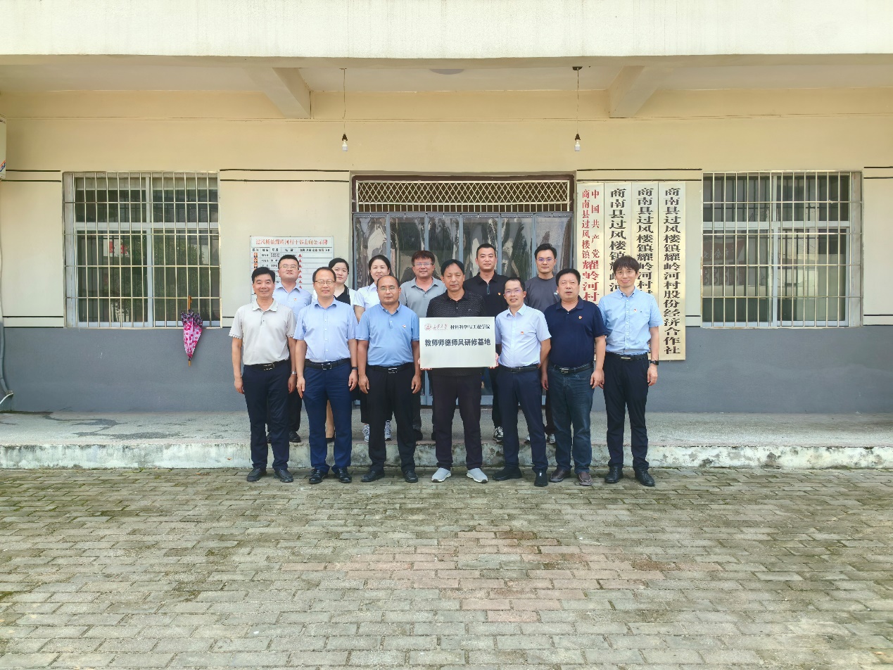 在耀岭河村,双方举行了乡村振兴帮扶工作座谈会暨材料学院“大学生劳动教育实践基地”“教师师德师风研修基地”授牌仪式。商南县副县长马飞、耀岭河村村党支部书记卿吉锋、驻耀岭河村第一书记叶有烽等与材料学院一行开展座谈。会后,材料学院一行实地走访慰问了当地老党员及困难群众,并调研当地旅游产业发展情况。