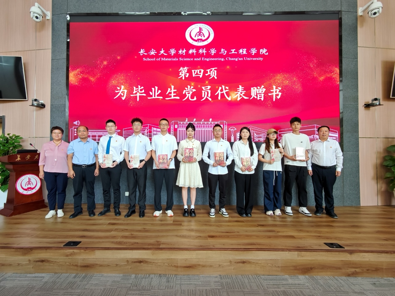 随后,学院领导为毕业生党员代表赠送《为什么是中国》、《苦难辉煌》等书籍。王振军在赠书时强调,希望同学们养成“爱读书、读好书、善读书”的习惯,将理论学习作为终身必修课,在常学常新中加强理论修养,在知行合一中主动担当作为。