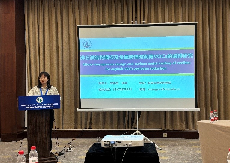 耿九光、牛冬瑜、常郗文分别作了题为“反应型净味剂对橡胶改性沥青硫化气体抑制机理研究”、“高温条件下颗粒接触力配位数对沥青混合料抗车辙性能影响研究”、“沸石微结构调控及金属修饰对沥青VOCs的减排研究”的学术报告。