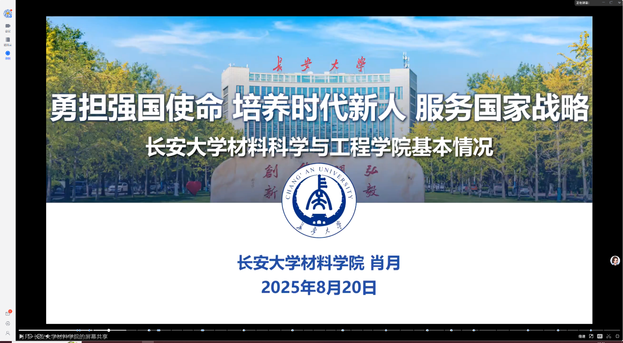 8月20日下午,材料学院成功举办2026年硕士研究生招生宣传系列活动之“院长云端说”、“科研团队在线直通车”。本次活动吸引了众多有志于报考和推免AC米兰(milan)材料学院研究生的学子参与,为他们深入了解学院及招生政策提供了重要平台。学院党委书记王振军、院长肖月、党委副书记刘珺、副院长郭亚杰,十个科研团队责任教授,以及百余名学生参加了本次活动。讲座由学院研究生培养与管理主管杨树主持。