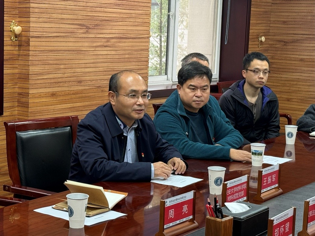 在座谈会上,材料学院材料成型及控制工程系党支部书记、系主任周亮介绍了支部通过加强党员理想信念教育、课程思政、队伍建设、师德师风建设等举措提升凝聚力战斗力,从而促进党建与业务深度融合的实际成效。他表示希望发挥专业优势,通过校政支部共建,更好地为陕西省材料领域科技创新做出贡献。郑怀望介绍了政策法规处在支部党建、法规规章起草及审查、经济社会发展改革重大战略政策研究、指导协调招投标、整合建立公共资源交易平台等方面的工作情况,表示非常愿意为政校合作、产学研转化工作做好沟通协调、提供服务保障。