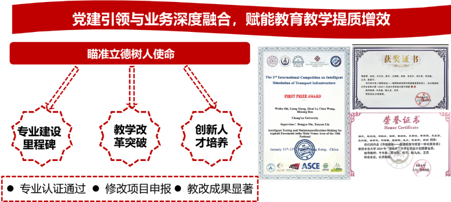 党支部以党建引领,搭建多元平台助力教师成长。一方面,组织专题培训、学术研讨,融合党的先进理论与教育科研方法,提升教师政治素养与专业能力;另一方面,营造良好学术氛围与创新环境,鼓励探索突破,提供发展空间。肖月教授获批陕西省三秦英才青年人才,何锐教授获交通部交通运输青年科技英才,张雷老师获批教育部海外引才专项,盛燕萍教授获陕西省公路学会青年科技奖,邢明亮和齐琳副教授获评AC米兰(milan)优秀教师。