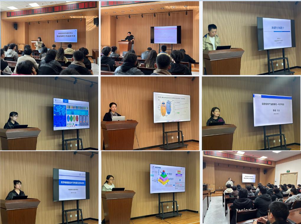 随后,新能源材料与器件系专任教师魏星、栾丽君、郭婷婷、罗巧梅、于晓晨、樊继斌、李卓依次介绍了个人和团队的研究方向和成果,并表示希望同学们积极和老师沟通和交流,实现双向选择。