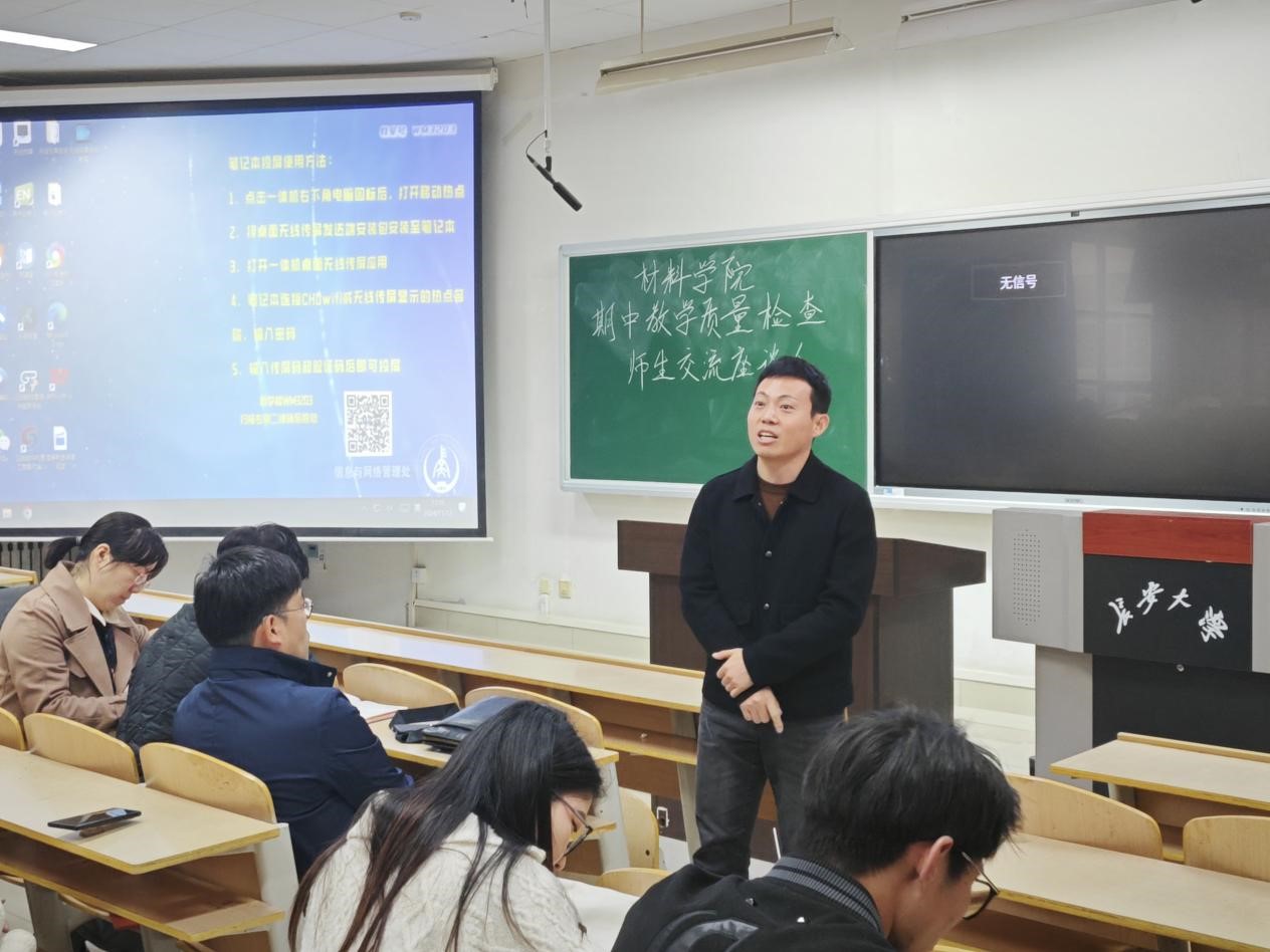 为全面了解本学期本科教学运行情况,加强教学过程管理,及时发现和处理教学各环节存在的问题,巩固本科教育教学审核评估评建工作成果,不断提高本科教育教学质量,材料学院于11月12日中午12:30,在北校区WM3203教室召开2024-2025学年第一学期本科生期中教学质量检查座谈会。学院副院长徐义库、副书记刘珺、教学督导张晓峰老师、学办副主任王蒙蒙、各系主任、副主任、学院教学管理人员,各级辅导员老师及学生代表参加会议。