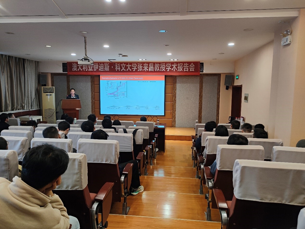 10月26日,应材料学院张凤英教授、李尧副教授邀请,来自澳大利亚伊迪斯·科文大学的张来昌教授为学院师生作了题为“3D打印钛合金的腐蚀行为”的学术报告。副院长郭亚杰教授及材料学院师生参加并听取了报告。